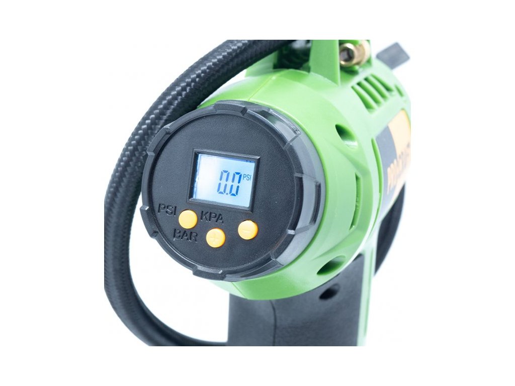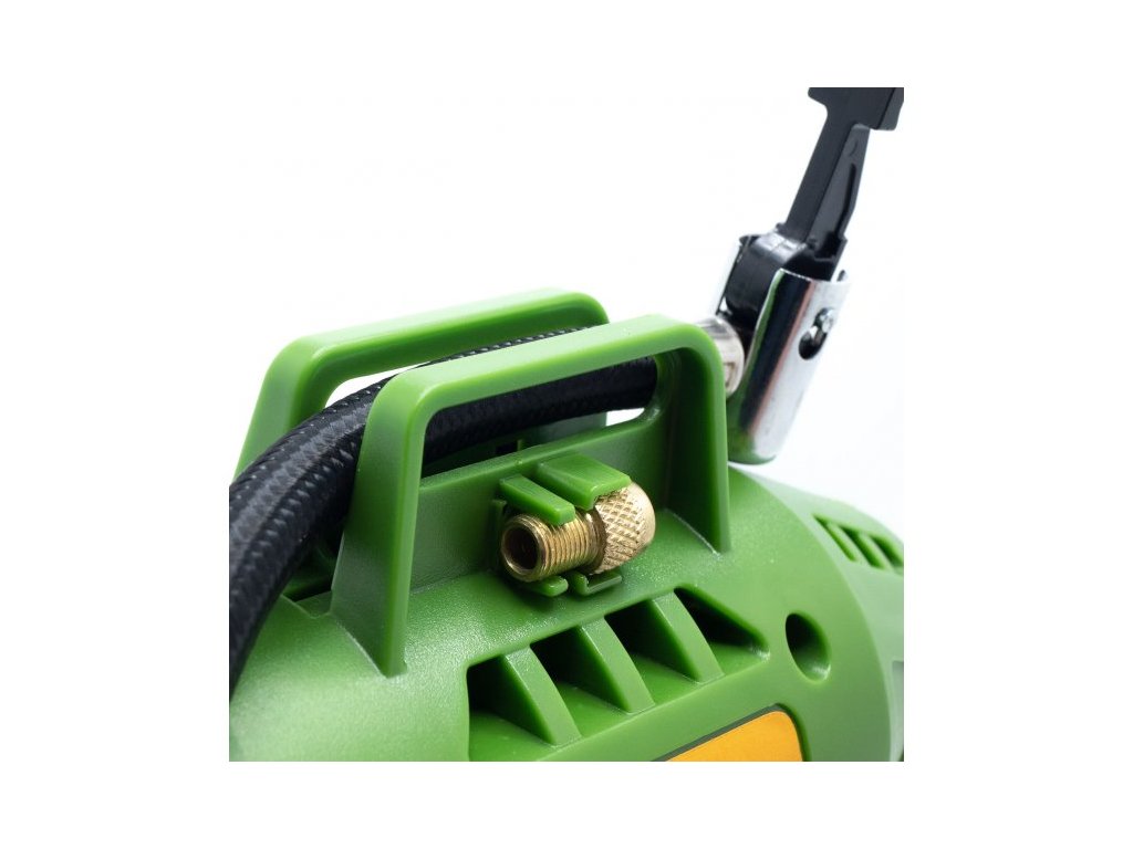 Prídavný kompresor je určený na kontrolu a doplnenie potrebného tlaku v pneumatikách. Súčasťou sú adaptéry na hustenie pneumatík, ktoré slúžia na nafukovanie športových lôpt, nafukovacích predmetov, matracov a hračiek. Displej kompresora umožňuje zvoliť požadované jednotky a cieľový tlak, pri ktorom sa kompresor automaticky vypne. Spínač kompresora je vybavený bezpečnostným spínačom proti samovoľnému spusteniu a blokovaním spínača v zapnutej polohe. Prístroj sa dodáva v kartóne bez batérie a nabíjačky.