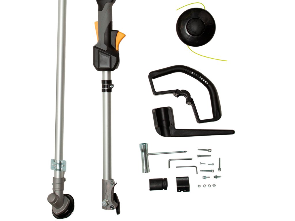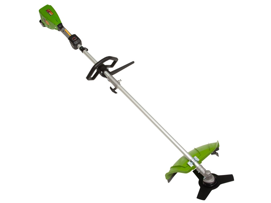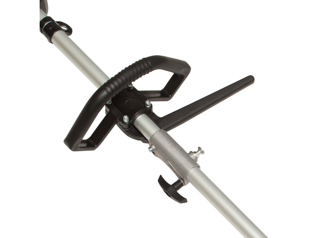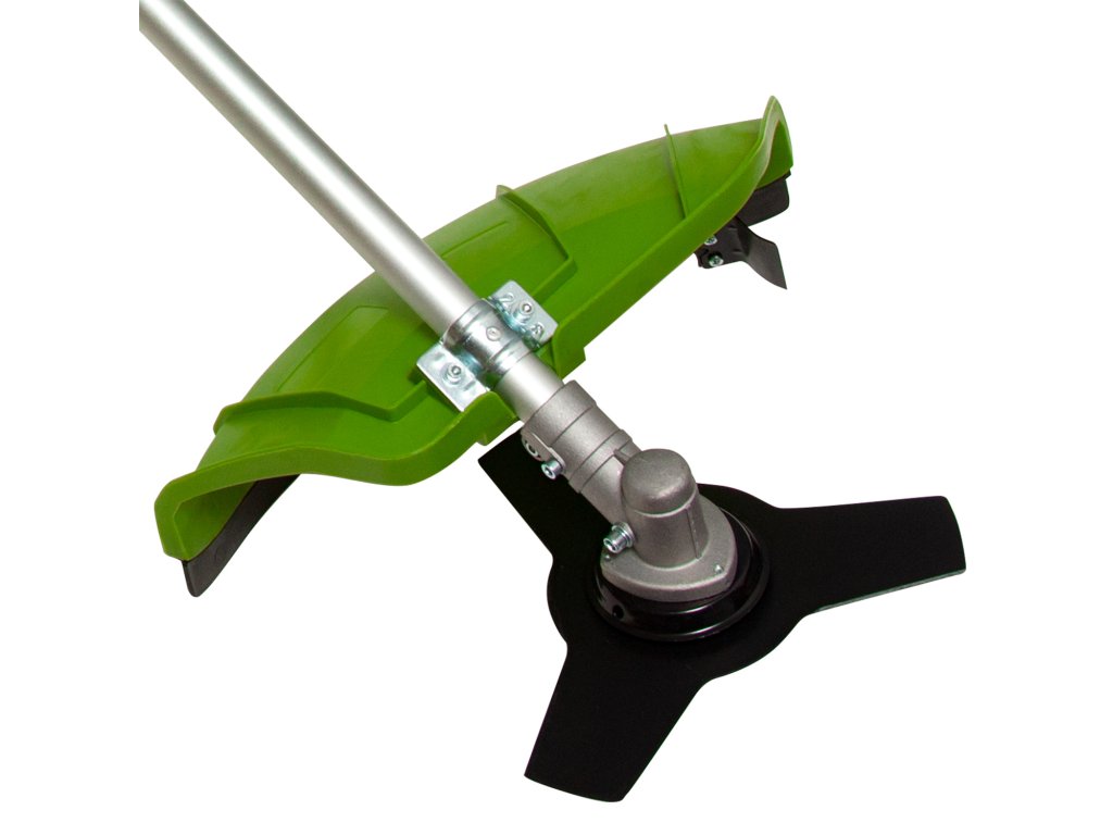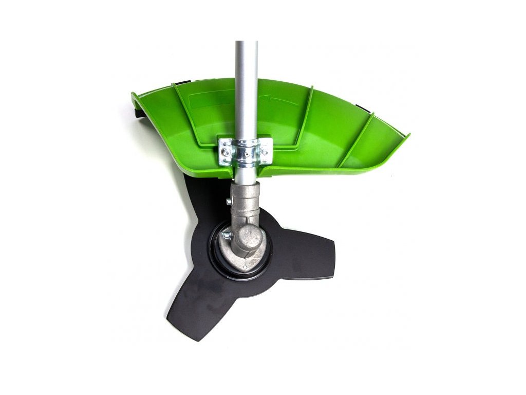 Ergonomický dizajn, dobre vyvážená konštrukcia a dvojramenný popruh zabezpečujú pohodlnú manipuláciu aj pri dlhšom používaní. Priemer žacieho noža 300 mm umožňuje efektívny záber, zatiaľ čo priemer trubky 26 mm a hriadeľa 8 mm zaručujú vysokú mechanickú odolnosť.