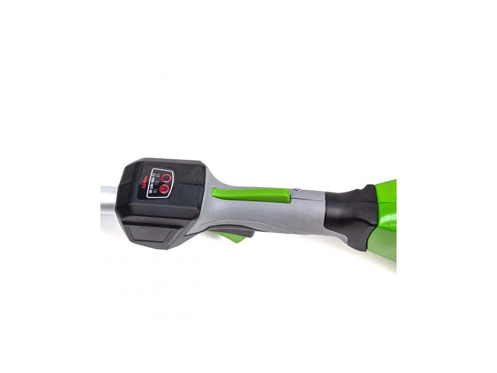 Silný elektromotor s dvojrýchlostným režimom (až 7000 ot./min) umožňuje prispôsobiť výkon konkrétnym podmienkam kosenia – či už ide o bežnú údržbu trávnika alebo odolnejší burinový porast. Stroj je vybavený funkciou plynulého rozbehu (soft start), ktorá zvyšuje bezpečnosť a chráni mechanické súčasti pred opotrebovaním pri štarte.
