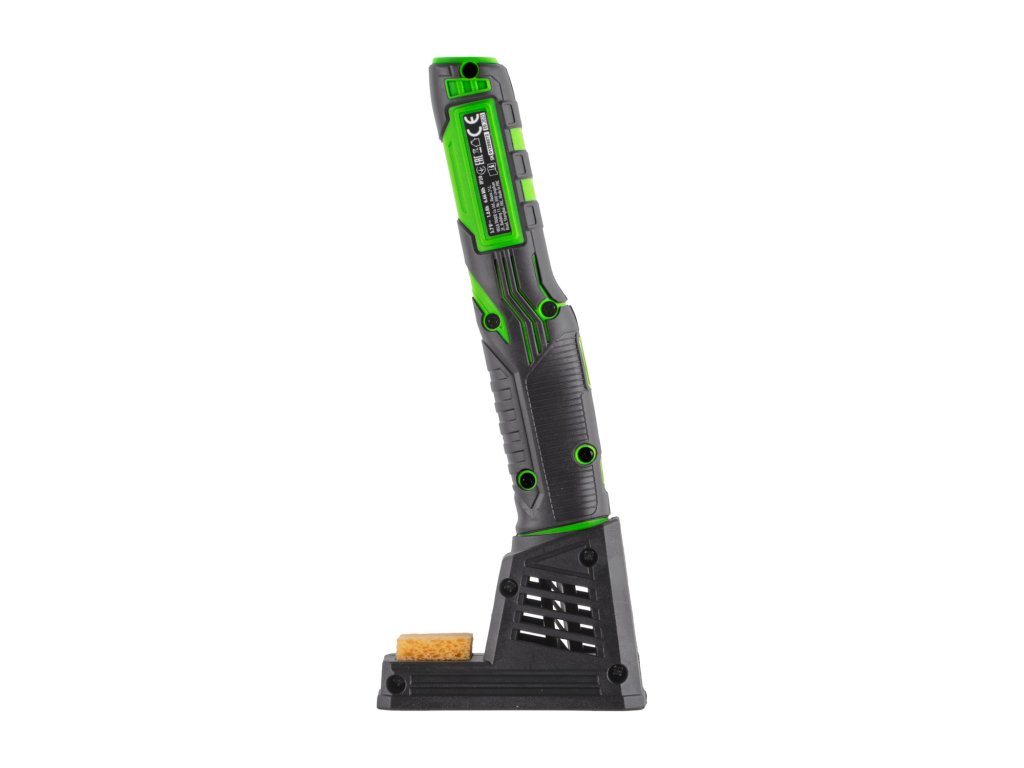 Aku spájkovačka predstavuje moderné riešenie pre kutilov a servisných technikov, ktorí oceňujú slobodu pohybu bez obmedzenia napájacím káblom. Vďaka vstavanej Li-ion batérii 3,7 V s kapacitou 1,8 Ah umožňuje pracovať až 60 minút na jedno nabitie, čo je ideálne pre bežné spájkovacie práce v dielni aj v teréne. Spájkovačka sa zahreje na pracovnú teplotu už za 45 sekúnd a dosahuje maximálnu teplotu 450 °C. Výkon 11 W zabezpečuje rýchle a efektívne spájkovanie vodičov, elektronických súčiastok aj jemných komponentov. Pre bezpečnú a úspornú prevádzku je vybavená automatickým vypnutím po 10 minútach nečinnosti.