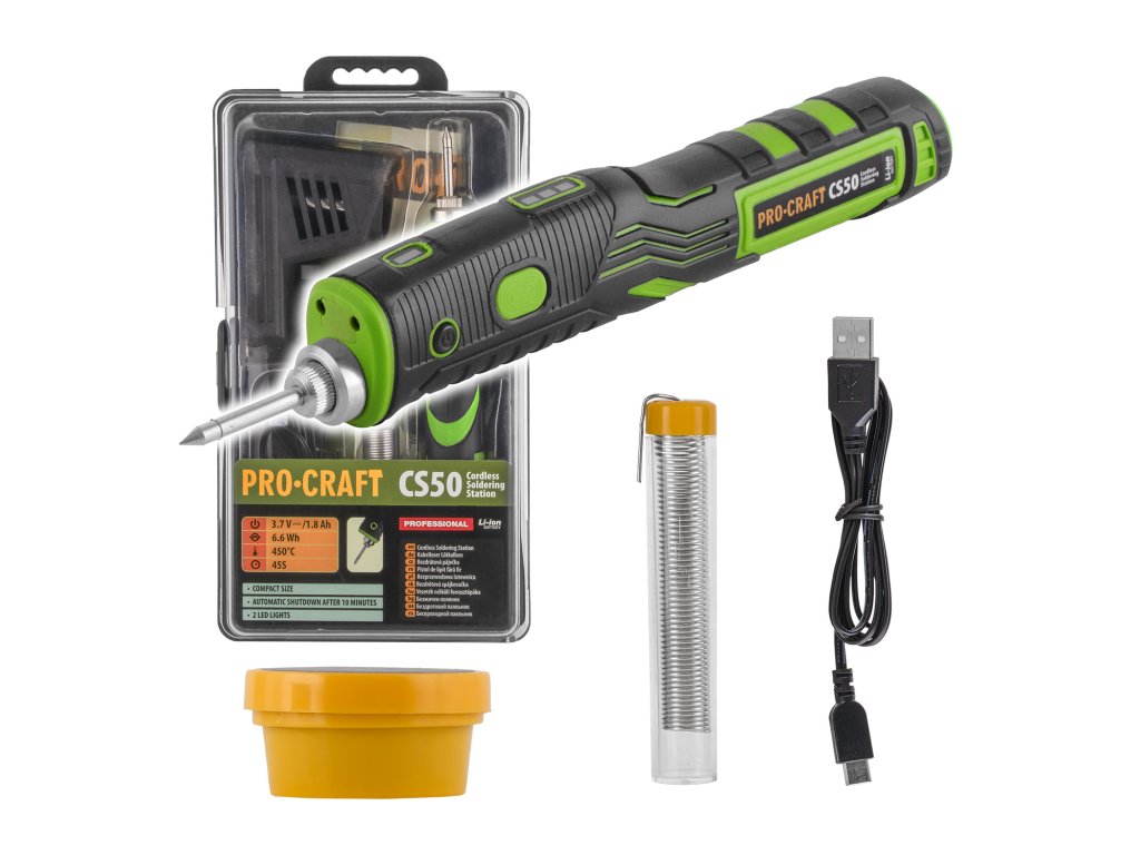 Aku spájkovačka Procraft CS50 je spoľahlivé a ľahko prenosné náradie, ktoré ponúka komfort bezdrôtovej prevádzky, rýchle zahriatie a praktické funkcie pre každodenné použitie. Vďaka kompaktným rozmerom, dlhej výdrži a bohatému príslušenstvu je ideálnou voľbou pre každého, kto potrebuje spájkovať rýchlo, presne a bez obmedzenia káblom.