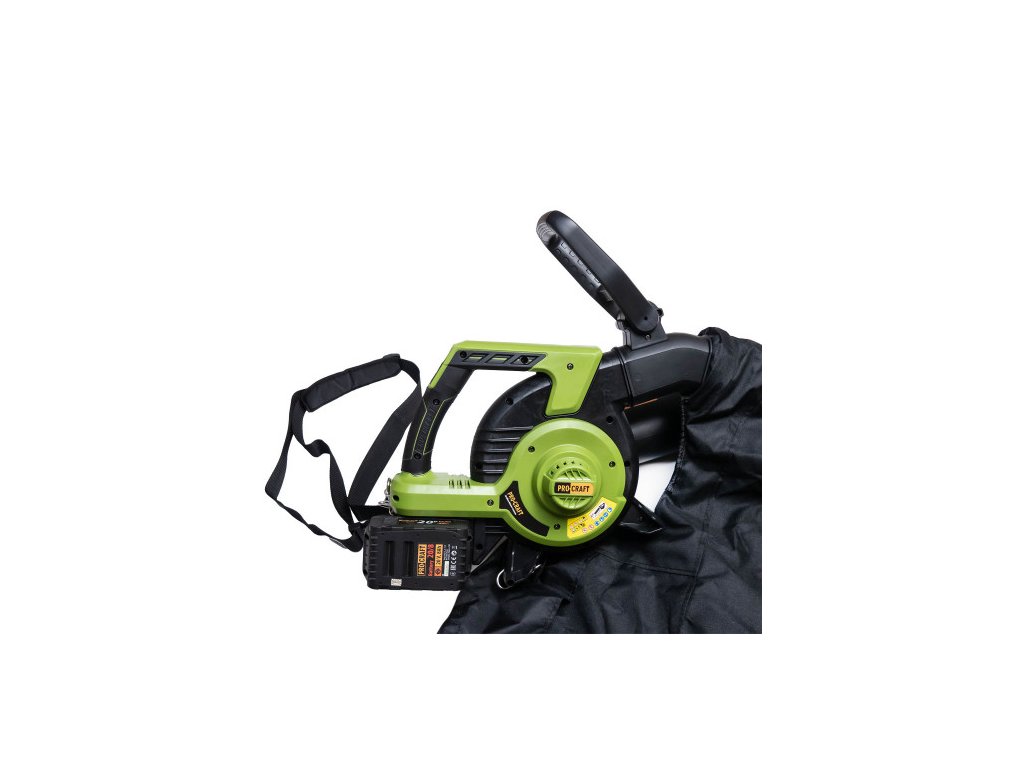 Akumulátorový vysávač lístia Procraft VB20 (bez batérie a nabíjačky) je určený na fúkanie alebo vysávanie. Výkonný motor s príkonom 2200 W a 15 500 otáčkami za minútu zabezpečuje dostatočný výkon stroja. Funkcia mulčovania využíva kovové nože na drvenie v pomere 10:1, čím sa objem odpadu zmenší desaťnásobne a uľahčí sa jeho kompostovanie. Rýchloupínacie vrecko uľahčuje prácu pri vyprázdňovaní. Súčasťou balenia je tryska a sací adaptér. Kartónové balenie.