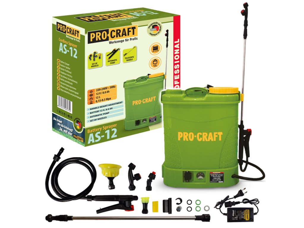 Akumulátorový postrekovač Procraft AS-12 je určený na postrekovanie, rozprašovanie produktov a prostriedkov, ošetrovanie rastlín a stromov, ničenie škodcov a buriny, dezinfekciu a čistenie priestorov. Keď je nádoba prázdna, dôjde k automatickému vypnutiu. Spoľahlivé čerpadlo s nastaviteľným prietokom do 3,1 l/min a tlakom do 5,5 baru a integrovanou barometrickou reguláciou. Priložená n nabíjačka a batéria bezpečne umiestnené vo vnútri stroja v puzdre odolnom voči vlhkosti. Prevádzkový čas až 7 h v závislosti od intenzity práce a pracovného tlaku. Postrekovač má teleskopickú kovovú trubicu a je vyrobený z kvalitných materiálov, ktoré pod tlakom nepraskajú. Je vybavený gumovým tesnením, ktoré je odolnejšie ako štandardné silikónové tesnenie. Súčasťou balenia sú náhradné vymeniteľné trysky, trysky pre rôzne vzory striekania, praktický chrbtový popruh, tesniace krúžky a pohodlná spúšť pištole. Nádoba postrekovača je priesvitná, takže pri práci vidíte objem kvapaliny. Balenie v kartóne.