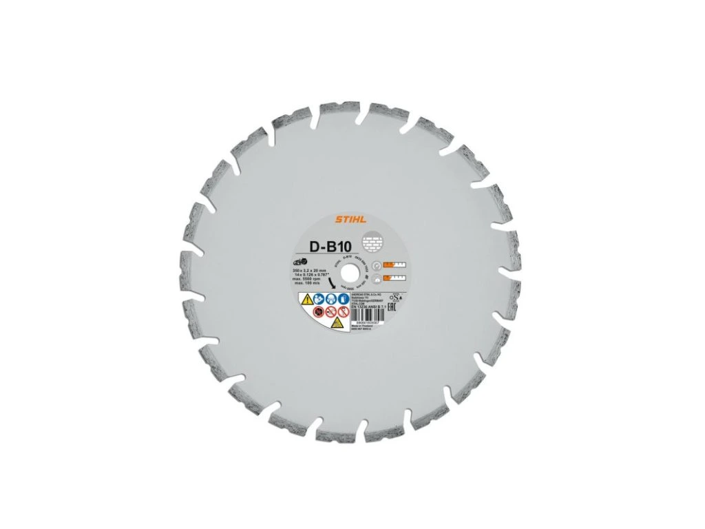 Diamantový rezný kotúč D-B10 je vhodný najmä na železobetón, betón a tehlu . Diamantový rezací kotúč STIHL D-B10 s priemerom 300 mm je možné použiť s nasledujúcimi rozbrušovacími pílami:- STIHL TS 410