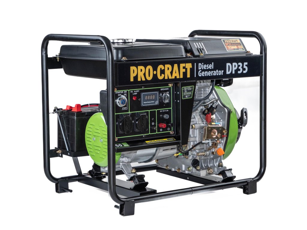 Procraft DP35 je výkonný dieselový generátor určený do náročných podmienok a na dlhodobé použitie. Ponúka solídny výkon, úspornú prevádzku, jednoduché ovládanie a spoľahlivý elektronický štart. Ideálna voľba pre každého, kto potrebuje nezávislý zdroj elektriny s dlhou výdržou.