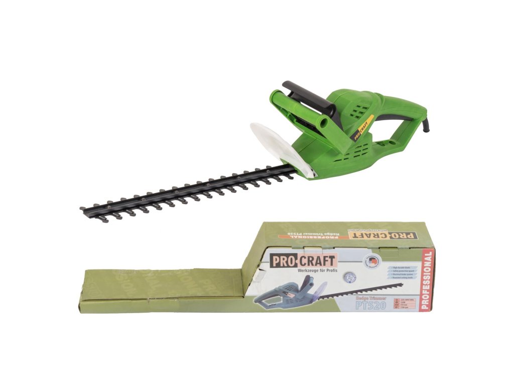 Procraft PT520 nožnice na živý plot na strihanie a tvarovanie kríkov a živých plotov s hrúbkou nestrihaných výhonkov do 20 mm. Výkonný a tichý motor s výkonom 520 W a vysokými otáčkami až 1800 zaručuje dlhú bezproblémovú prevádzku. Prácu uľahčuje rukoväť s protišmykovým pogumovaným povrchom. Lišta s dĺžkou 41 cm umožňuje zastrihávanie väčšiny živých plotov. Nízka hmotnosť 2,75 kg a kompaktné rozmery uľahčujú manipuláciu. Kartónové balenie.