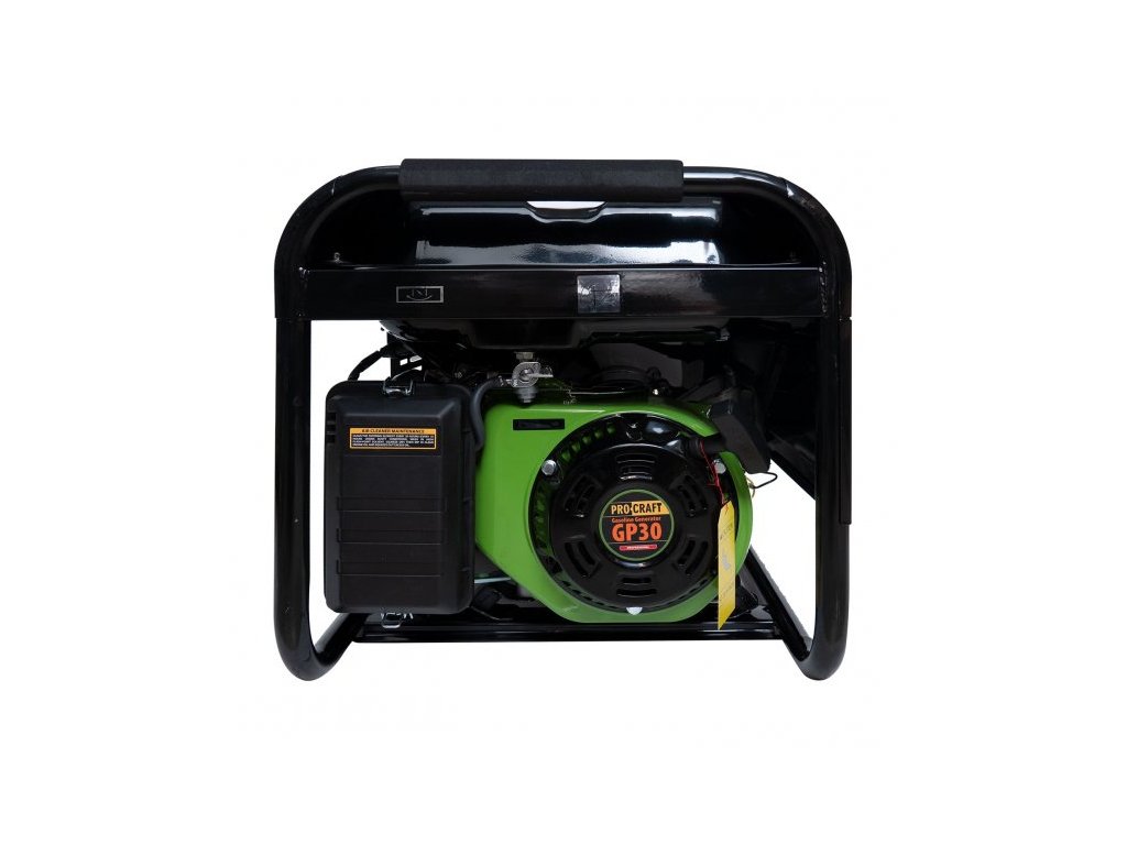 Procraft GP30 je určený na použitie ako nezávislý generátor energie pri výpadku prúdu, ako zdroj energie pri kempovaní, na záhrade atď., kde nie je k dispozícii elektrická sieť. Vďaka vysokému výkonu dokáže napájať nielen domáce spotrebiče, ale aj spotrebiče indukčného typu. Generátor energie má 12l palivovú nádrž, ktorá zaručuje dlhú nepretržitú prevádzku. Robustný ochranný rám umožňuje používať generátor energie v akýchkoľvek podmienkach a uľahčuje aj jeho prepravu. Súčasťou dodávky je kľúč na zapaľovaciu sviečku. Balenie v kartóne. Prepäťová ochrana AVR.