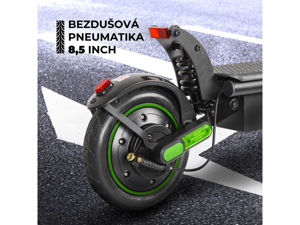 Pre maximálny komfort je kolobežka vybavená predným aj zadným odpružením, ktoré účinne tlmí nerovnosti terénu. Pneumatiky s priemerom 8,5" zabezpečujú stabilitu a odolnosť proti defektom.