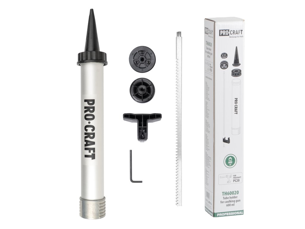 Trubicový zásobník Procraft TH60020 je príslušenstvo určené pre tesniacu pištoľ Procraft PC20bb. S objemom 600 ml je ideálny na použitie s väčšími" klobásovými " tmelmi alebo štandardnými mäkkými tubami.