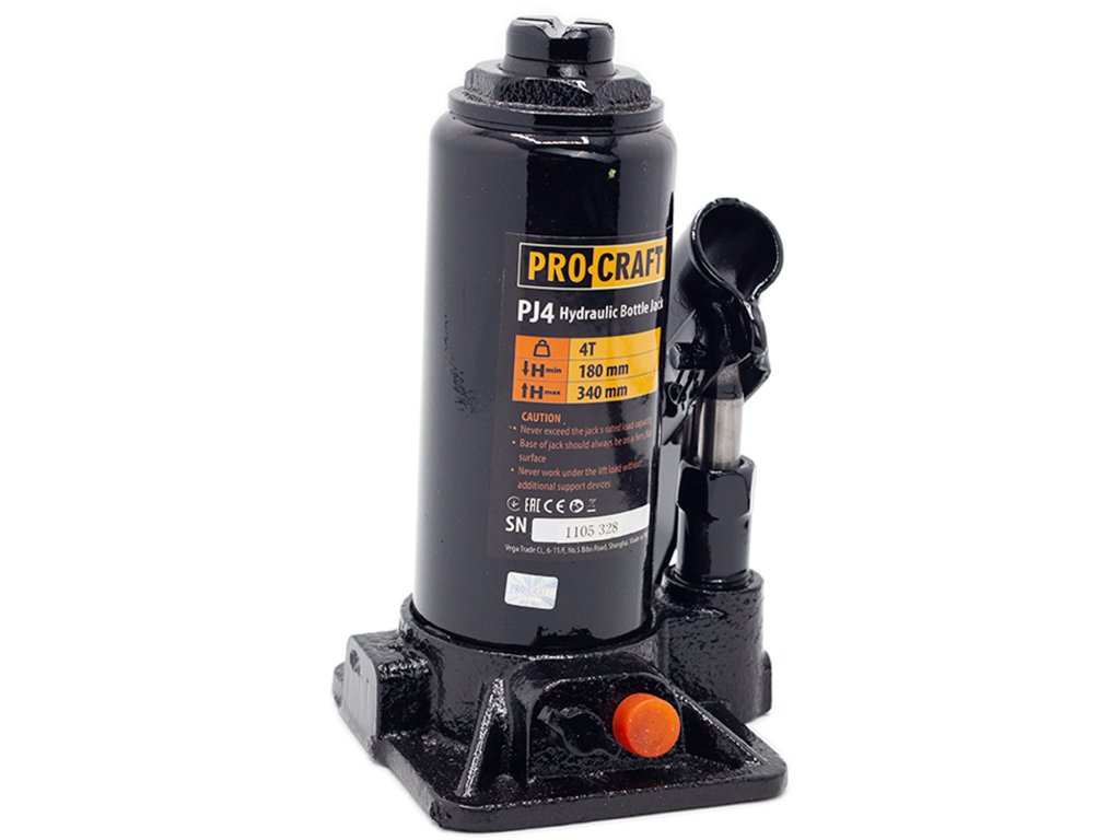 Hydraulický zdvihák Procraft PJ4 je určený na zdvíhanie automobilov v stavebníctve a priemysle. Konštrukcia je vyrobená z kvalitnej liatiny, vybavená bezpečnostným ventilom. Zdvihák má nosnosť 4 tony a rozsah zdvihu od 180 mm do 340 mm a rozsah zdvihu od 148 mm do 278 mm a je vybavený skrutkovacou pätkou. Pohodlné zdvíhanie a plynulé spúšťanie bremien uľahčuje prácu. Tyč je súčasťou dodávky. Kartónové balenie.