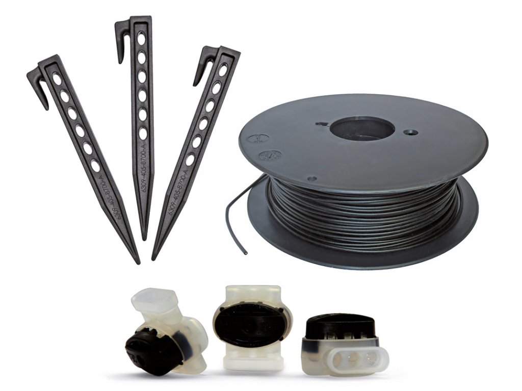 Inštalačná sada Kit L. 2 x 200 m vymedzovacieho kábla, 375 kolíkov, 2 svorkové konektory, 7 drôtových konektorov.Buďte prvý, kto napíše príspevok k tejto položke.