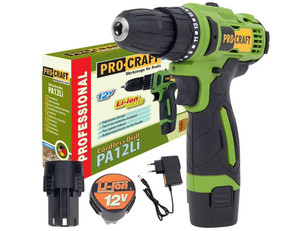 Vŕtací skrutkovač AKU Procraft PA12Li je praktický nástroj na hobby použitie všade tam, kde nechcete byť pri vŕtaní a skrutkovaní obmedzovaní napájacím káblom. Skrutkovač s pravým/ľavým smerom otáčania a krútiacim momentom 22 Nm je vhodný na skrutkovanie skrutiek, matíc a skrutiek s 1/4" bitovými nástavcami. Rýchloupínacie skľučovadlo umožňuje upínanie vrtákov a nástrojov so stopkou do priemeru 10 mm. Skrutkovanie na 1. a vŕtanie na 2. prevodovom stupni možno vykonávať s plynulou reguláciou otáčok Stroj je vybavený integrovaným LED osvetlením pracovnej plochy s funkciou dosahu. Súčasťou dodávky sú 2 batérie, nabíjačka. Kartónové balenie.