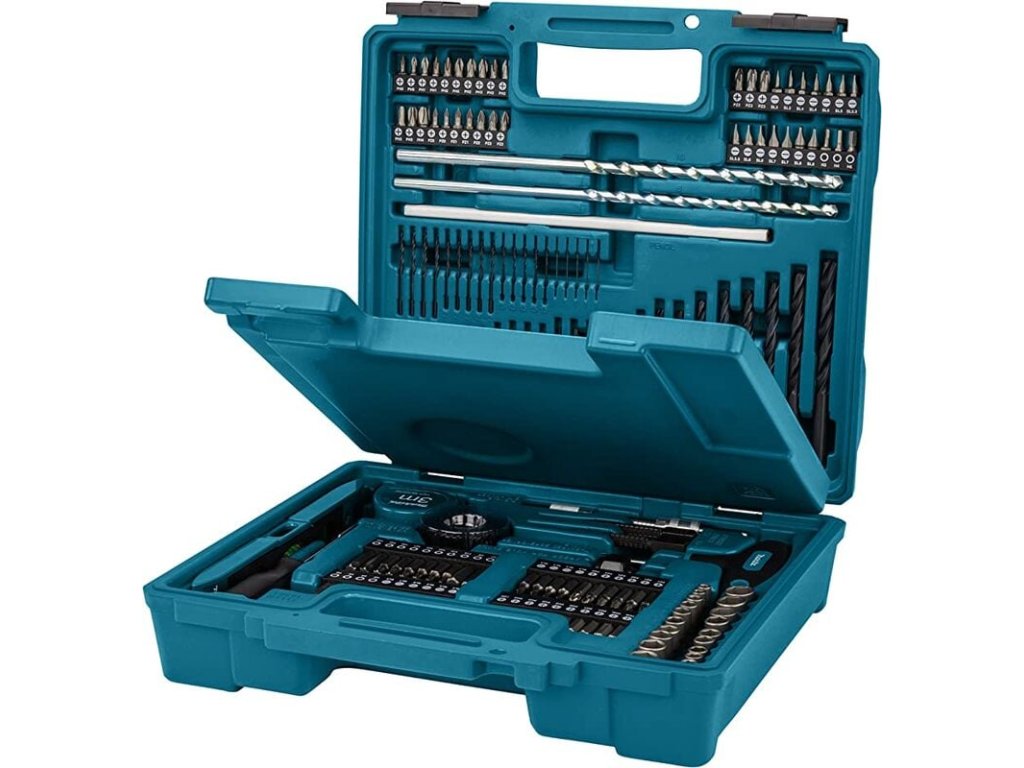 Sada bitov, vrtákov, nástrčných kľúčov 212 ks. Komplexná sada príslušenstva, ktorá obsahuje vrtáky do dreva, kovu, betónu,bity 25 mm a 50 mm, šesťhranné nástrčné kľúče, vykružovacie korunky 32, 38, 44 a 54 mm,magnetický držiak, meter a vodováhu.