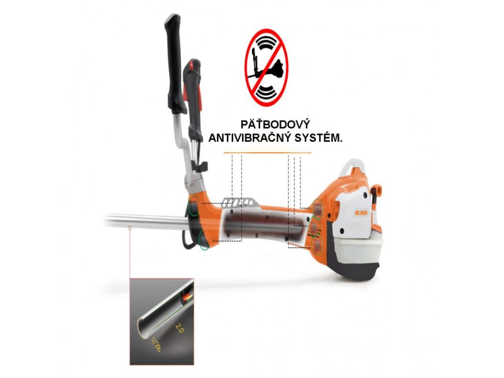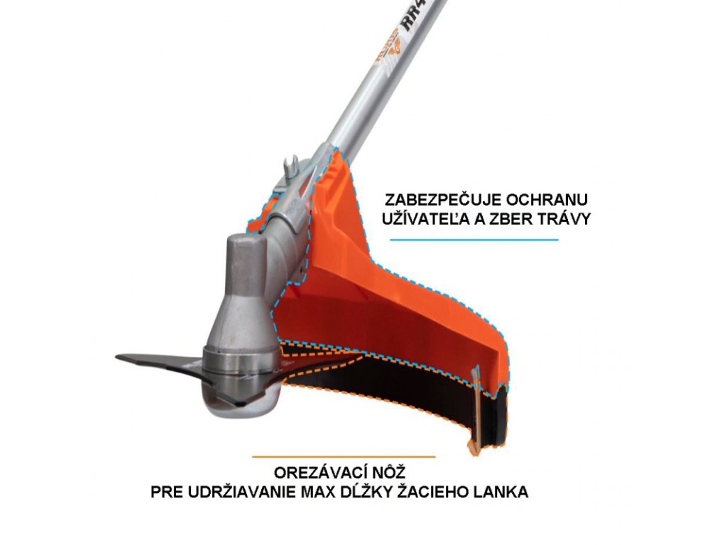 ▪ Krovinorez RURIS ťaží z rýchlonastaviteľnej konzoly nastavenia rukoväte RURIS PlusConfort, ktorá znižuje námahu pri pohybe zľava doprava počas kosavnia o viac ako 50 % v porovnaní s klasickým krovinorezom.