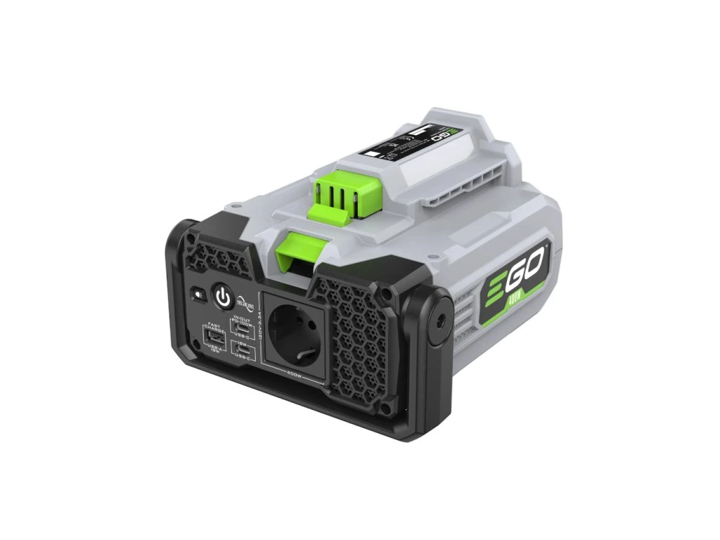 Model PAD5000E je výkonnejším súrodencom modelu PAD1800E a predstavuje ultimátne riešenie pre mobilnú energiu. Toto zariadenie mení jednosmerný prúd z akejkoľvek 56 V batérie EGO na striedavý prúd 230 V s trvalým výkonom až 400 W. Je ideálnou voľbou pre kempovanie, prácu v teréne, chaty bez elektriny alebo ako spoľahlivý záložný zdroj v domácnosti pri výpadku prúdu.