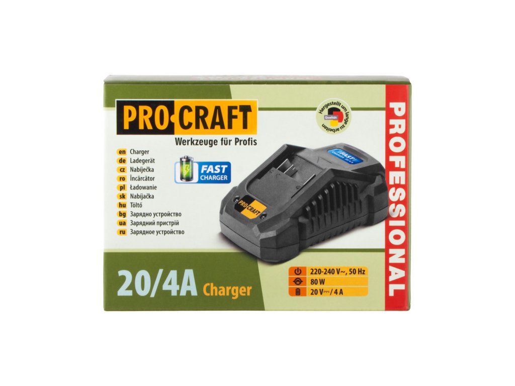 Nabíjačka pre 20V Li-ion batérie Procraft 20/4A je výkonné a spoľahlivé zariadenie určené na efektívne nabíjanie akumulátorov zo série 20V Procraft. Je ideálna na profesionálne aj domáce použitie s aku náradím Procraft.