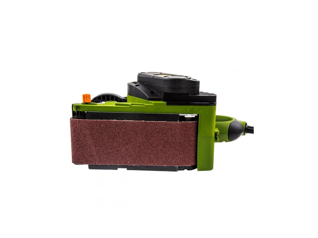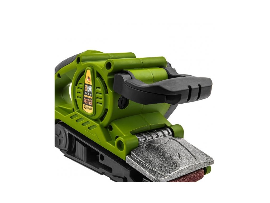 Pásová brúska PBS1400 je určená na výkonné rovinné brúsenie drevených materiálov - trámov, dosiek, lamiel a doskových materiálov. Je vybavená textilnou nádobou na prach, do ktorej sa odsáva brúsený materiál. Brúska je vybavená elektronickou reguláciou otáčok, ktorá v kombinácii so správne zvoleným brúsivom zaručuje kvalitný výsledok práce. Súčasťou balenia je brúsny pás.