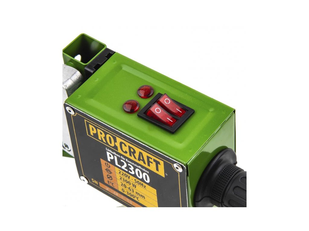 Polyfúzní svářečka Procraft PL2300 je určena k svařování plastových trubek z homopolymer polypropylenu, PPC, PPR a PELD. Regulace teploty v rozsahu 0-300°C umožňuje nastavení optimálních parametrů při práci s různými materiály. Sada nástavců zaručí svařování potrubí od 20 do 63mm. Lehká a kompaktní konstrukce umožňuje práci v omezeném prostoru. Součástí dodávky jsou nástavce s teflonovým povrchem D20/25/32/40/50/63mm, kovový kufřík, šroubovák, imbusový klíč, rukavice a metr. Balení karton.