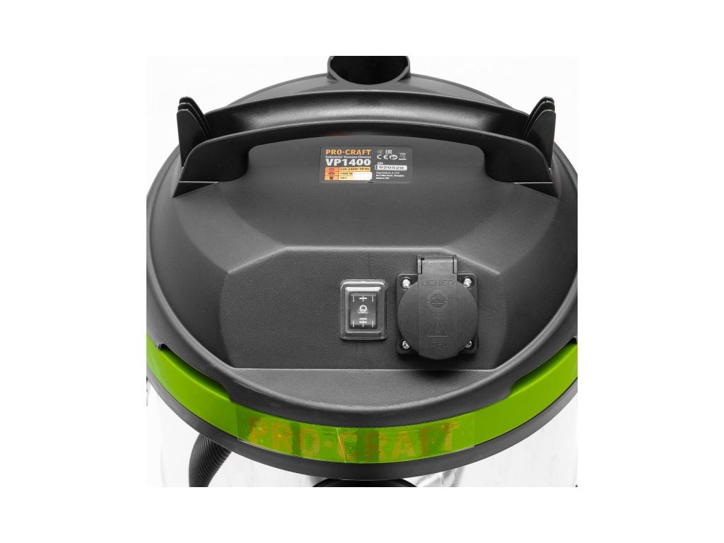 Priemyselný vysávač Procraft VP1400 je určený na mokré a suché vysávanie, na čistenie interiéru automobilov, dielní a domácností. Výkonný 1400W motor poskytuje vysoký sací výkon 17 kPa a je vhodný ako ručný vysávač na elektrické náradie. Poradí si s rozliatou vodou, ktorú vysaje do nádoby (čistenie kobercov). Rýchloupínacie klipy uľahčujú výmenu vreciek. Prácu vám uľahčí systém automatického spínania s integrovanou 230V zásuvkou vrátane funkcie časovača. Súčasťou dodávky je sacia hadica, teleskopická kovová trubica, hubica, vrecká a kolieska. Kartónové balenie.