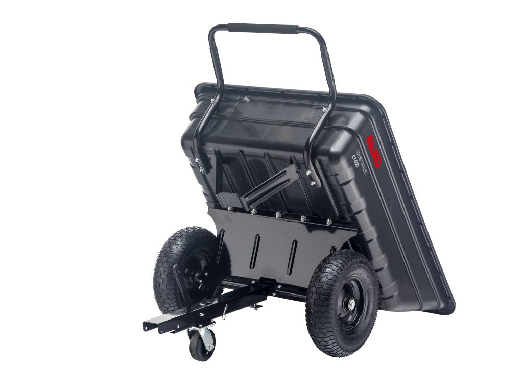 Váš dokonalý pomocník na záhrade. Veľmi všestranný a možno ho použiť aj ako samostatný dopravný prostriedok. Nezáleží na tom, či chcete prepravovať pokosenú trávu, lístie, hnojivo, kompost, piesok, mulč, drevo alebo iné materiály. Ľahko sa nakláňa pomocou veľkej rukoväte, ktorá umožňuje ľahké ťahanie prívesu.