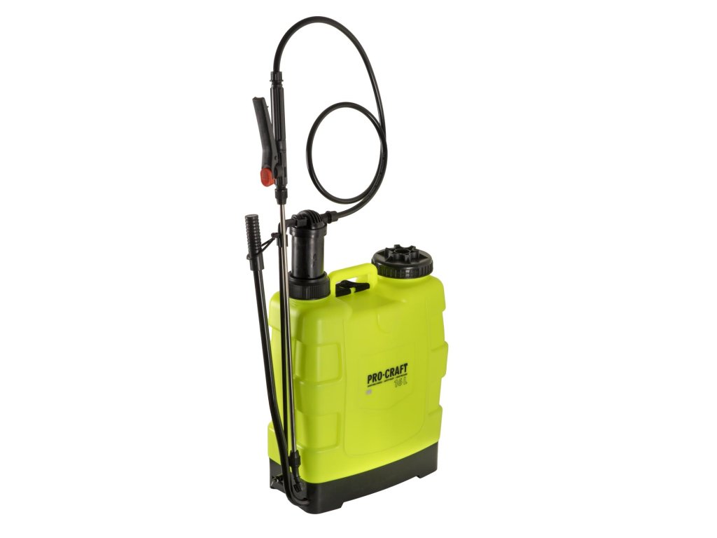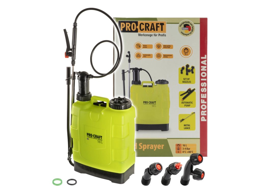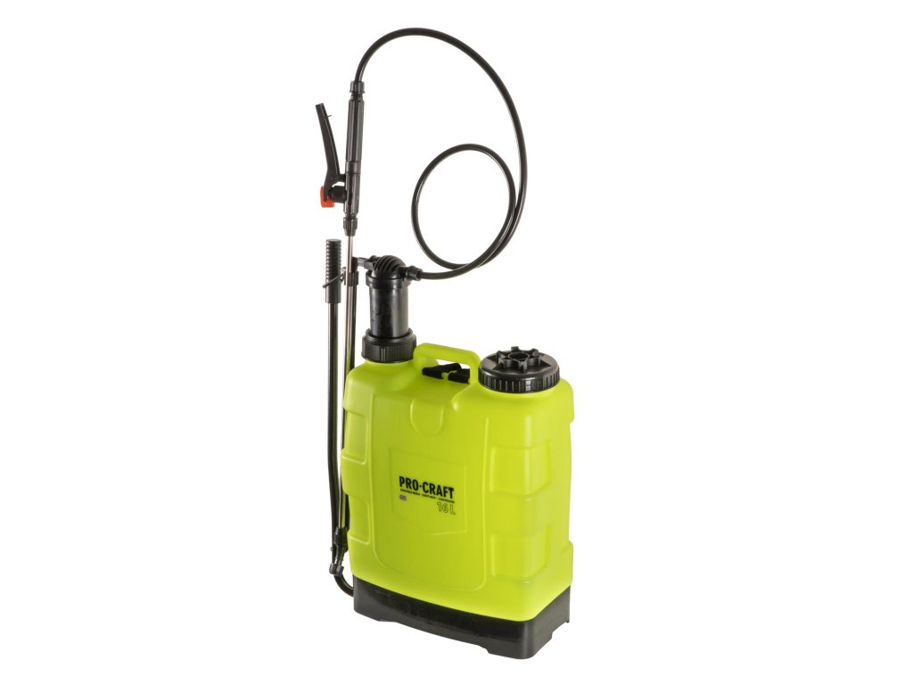 Procraft HS-16 ručný postrekovačObjem nádrže 16 l. Kovová striekacia trubica. Postrekovač je vyrobený z vysoko kvalitných materiálov, ktoré nepraskajú pod tlakom. Je vybavený gumovým tesnením, ktoré je odolnejšie ako štandardné silikónové tesnenie. Súčasťou balenia sú náhradné vymeniteľné trysky, praktický chrbtový popruh, tesniace krúžky a pohodlná spúšť pištole. Nádoba postrekovača je priesvitná, takže pri práci vidíte objem kvapaliny.