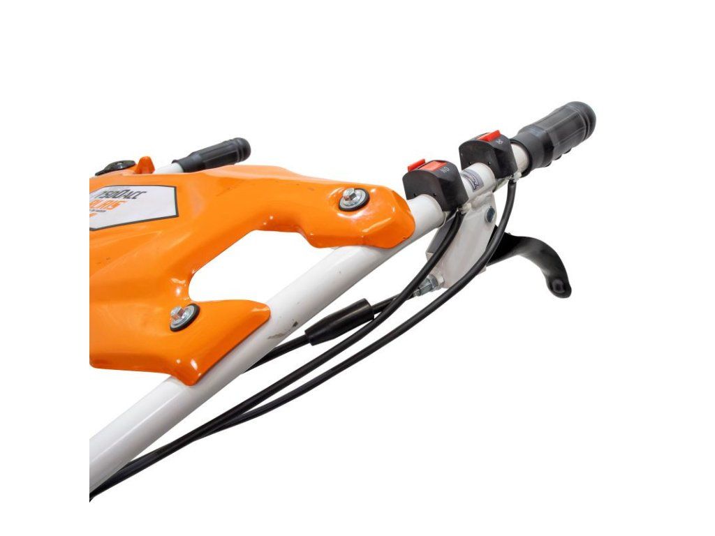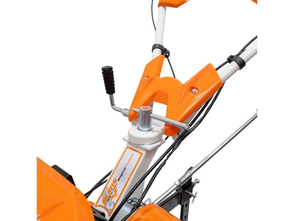 Aj keď váži 80 kg, manipulácia s ním je jednoduchá vďaka nahor nastaviteľným kovovým rohom a gumeným rukovätiam, ktoré tlmia vibrácie generované kultivátorom.