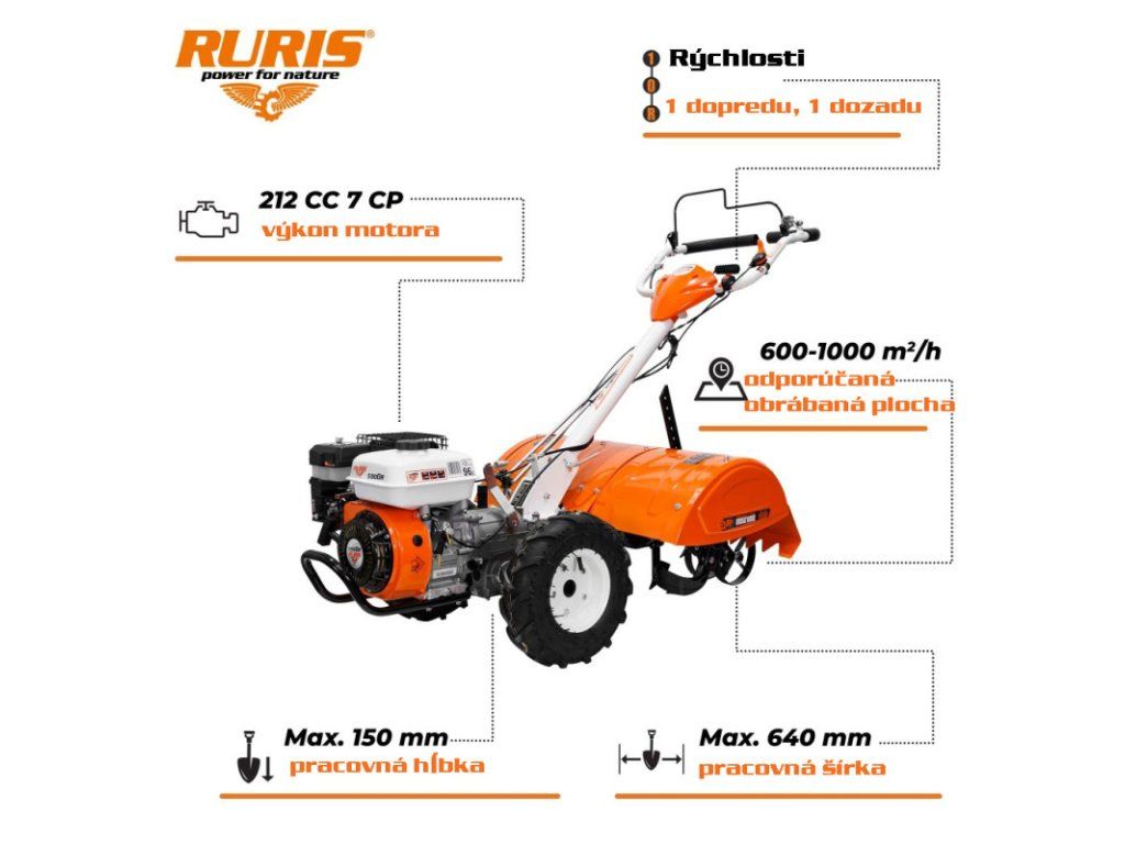 RURIS 5900 R – motorový kultivátor 7 HP s gumenými kolesami 5.00-6