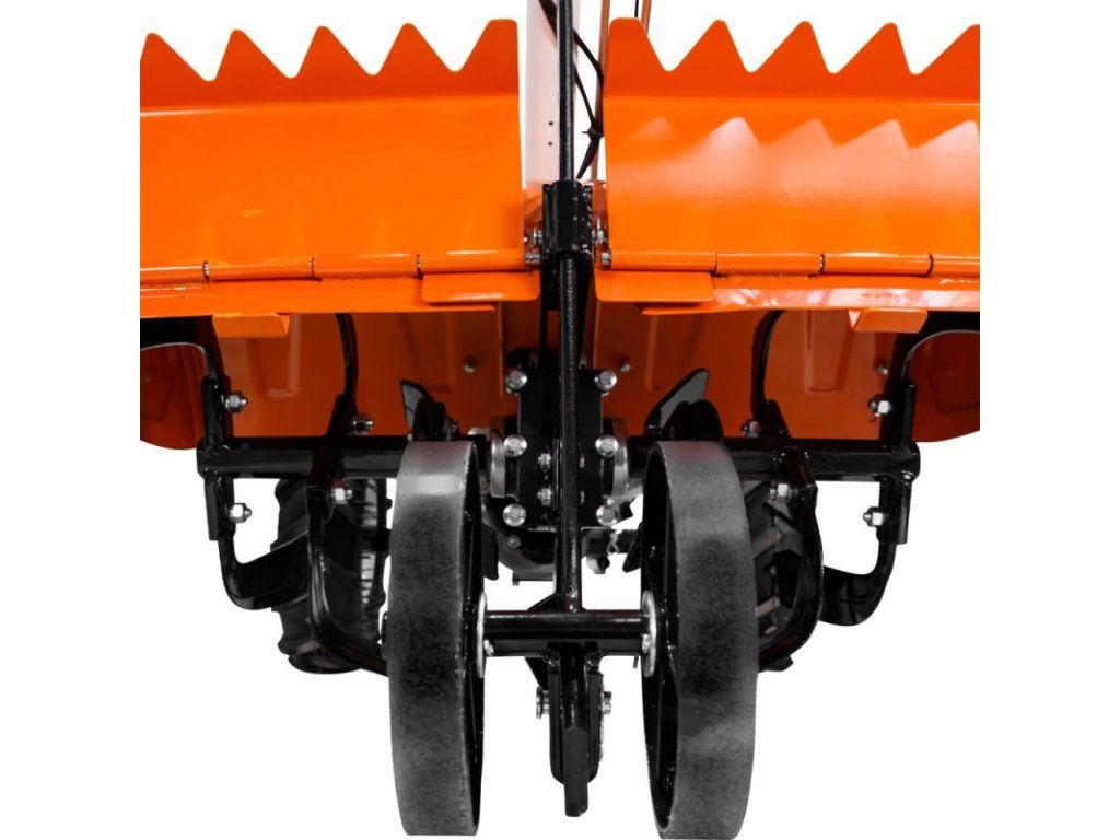 - ✅ Ťahaný zadný kultivátor – kolesá zabezpečujú pohyb, kultivátory pracujú nezávisle, čo eliminuje „skákanie" stroja a zvyšuje kontrolu obsluhy
