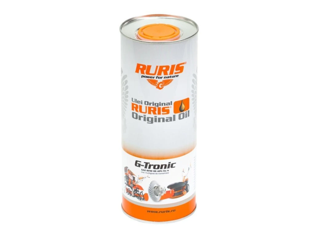 Prevodový olej RURIS G-Tronic je špecializovaný monográdny olej určený na mazanie prevodoviek pri extrémne náročných podmienkach zaťaženia a vysokých šmykových rýchlostiach. S viskóznou triedou SAE 80W-90 a certifikáciou API GL-4 zabezpečuje maximálnu ochranu ozubených prevodov motokultivátorov, motosáp a iných záhradných strojov RURIS.