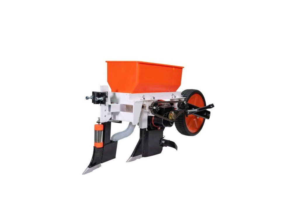 Hnacie kolesá sú poháňané pomocou reťaze na blokoch pre rozvoz semien, ktoré nechávajú osivo padať do drážky pripravenej radličkou.Výrobok má vaňu na uloženie semien.