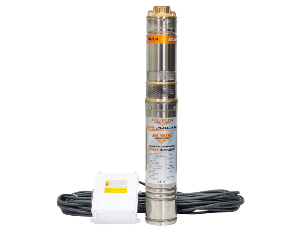 Ponorné skrutkové čerpadlo RURIS Aqua 104 je ponorné čerpadlo, ktoré dokáže dodávať čistú vodu do domácností alebo malých závlahových systémov, vodu zo studní a studní vŕtaných v maximálnej hĺbke 100 m. Čerpadlo môže byť tiež súčasťou vodného tlakového systému.