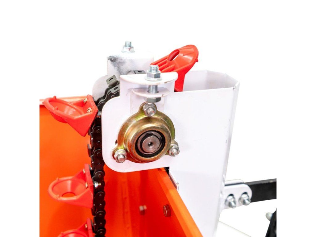 ZARIADENIE NA VÝSADENIE A HNOJENIE sadí pomocou zberných nádob, ktoré odoberajú osivo jednotlivo a neskôr ho zavádzajú do hĺbky stanovenej používateľom.