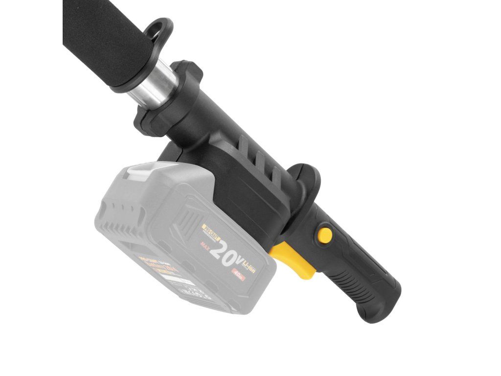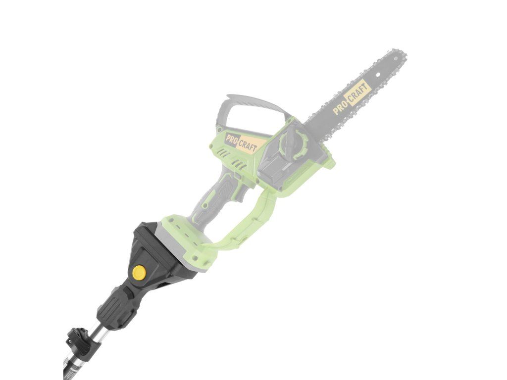 - Predlžovací nadstavec Procraft EP2.0R: teleskopická konštrukcia nastaviteľná od 1,2 do 2 m umožňuje pohodlné a bezpečné rezanie vo výškach bez rebríka.