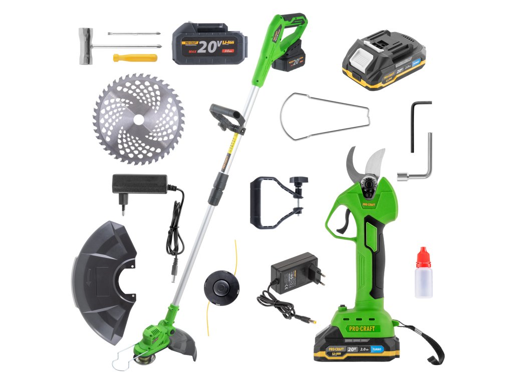 Sada obsahuje dva bezuhlíkové stroje – aku vyžínač PTA24BL so záberom 380 mm a batériou 20 V / 3 Ah a aku nožnice ES25Li s čepeľou SK5, nastaviteľným strihom 15/25 mm a batériou 20 V / 2 Ah. Výkonná a ľahká kombinácia pre efektívnu údržbu trávnika aj kríkov.