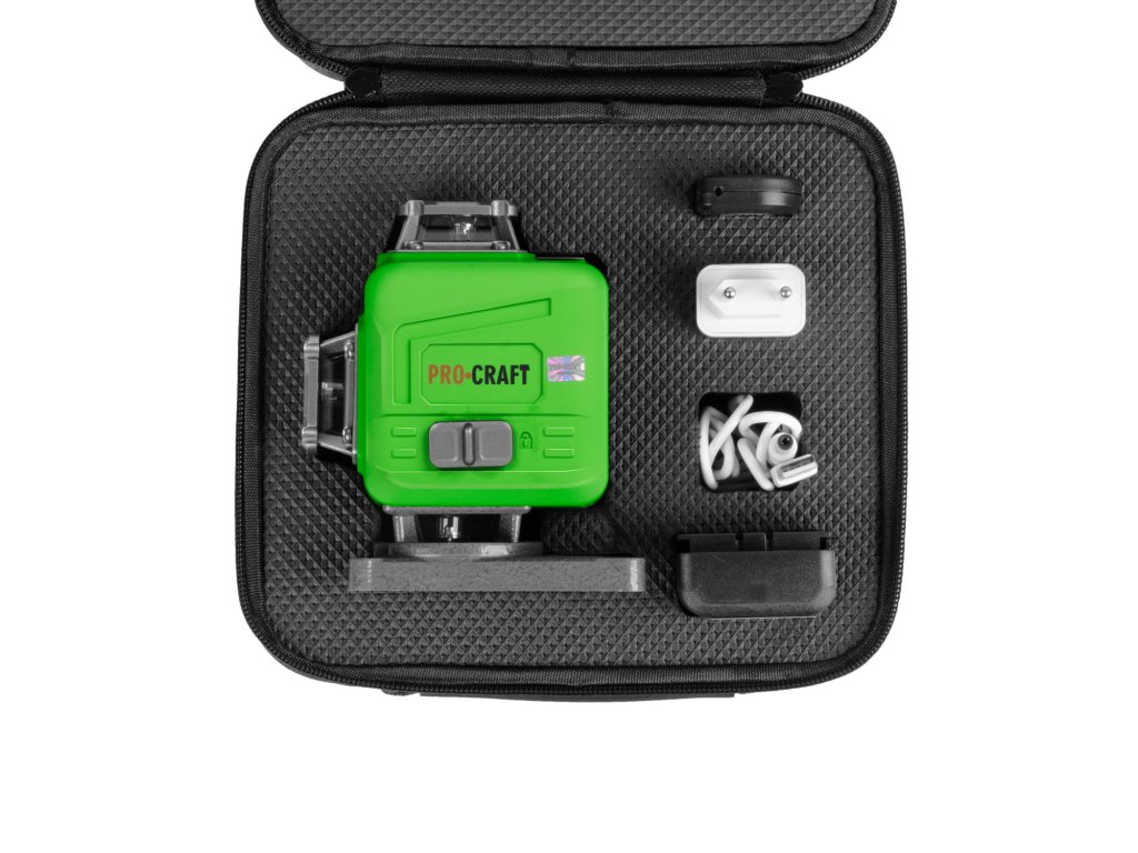 - Zelený líniový, krížový samonivelačný laser Procraft LE-4GL