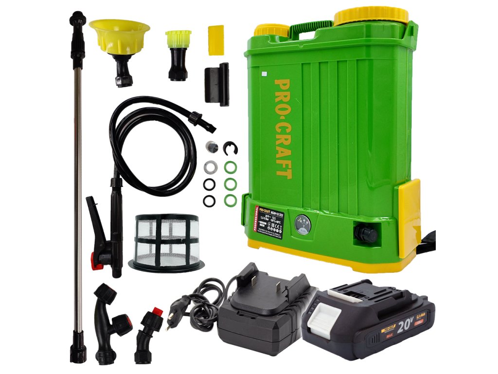 Akumulátorový postrekovač Procraft AS20-12 je určený na postrekovanie, rozprašovanie produktov a prostriedkov, ošetrovanie rastlín a stromov, ničenie škodcov a buriny, dezinfekciu a čistenie priestorov. Po vyprázdnení nádoby dôjde k automatickému vypnutiu. Spoľahlivé čerpadlo s nastaviteľným prietokom a tlakom do 5 barov a integrovanou barometrickou reguláciou. Postrekovač má teleskopickú kovovú trubicu a je vyrobený z vysokokvalitných materiálov, ktoré pod tlakom nepraskajú. Je vybavený gumovým tesnením, ktoré je odolnejšie ako štandardné silikónové tesnenie. Súčasťou balenia sú náhradné vymeniteľné trysky, trysky pre rôzne vzory postreku, praktický chrbtový popruh, tesniace krúžky a pohodlná spúšť pištole. Nádoba na postrek je priesvitná, takže počas práce vidíte objem kvapaliny.