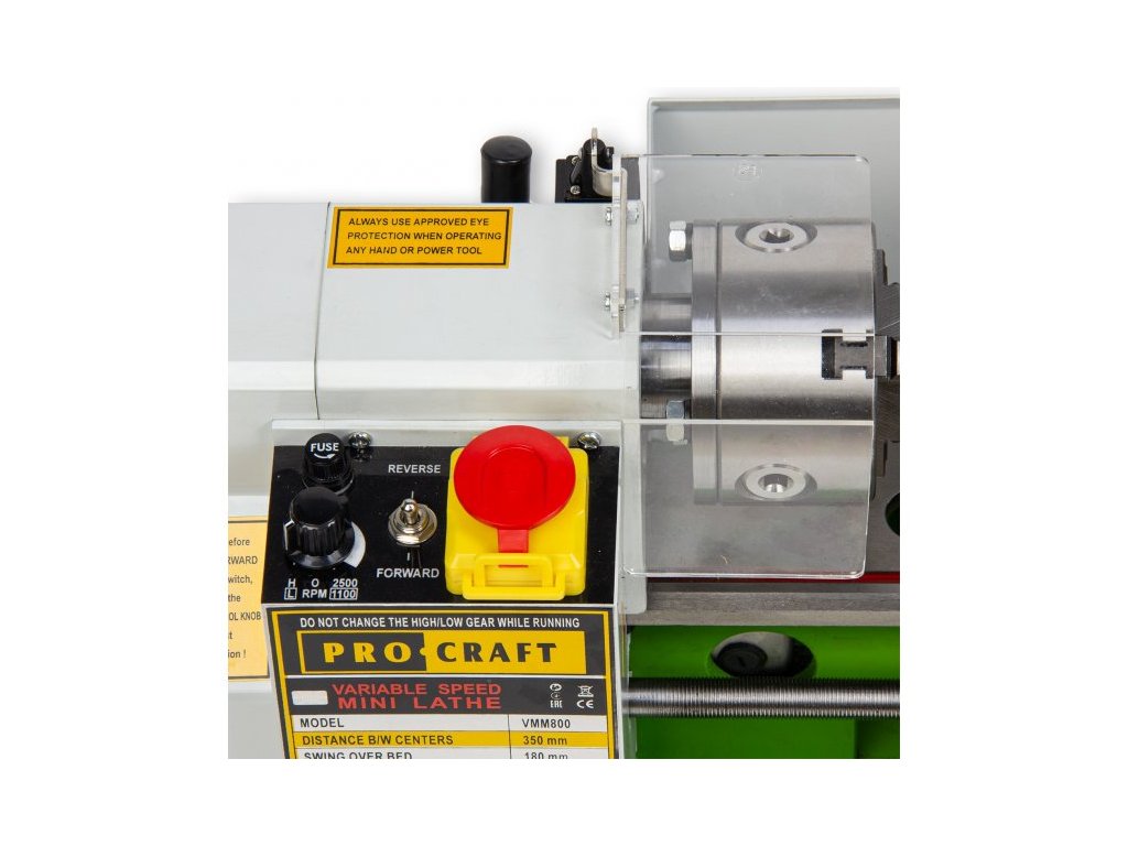 Sústruh na oceľ a plasty Procraft VMM800 je určený na sústruženie, rezanie závitov, obrábanie hliníka, ocele, plastu a mosadze. Výkonný motor s príkonom 550 W a vysokými otáčkami až 2 500 ot/min zaručuje dlhodobú bezproblémovú prevádzku. Regulácia otáčok v rozsahu 0 - 2500 ot/min umožňuje nastaviť optimálne parametre pri práci s rôznymi materiálmi. Robustná liatinová základňa a stabilná konštrukcia zaručujú presné a kvalitné obrábanie. Automatický pozdĺžny posuv uľahčuje a urýchľuje prácu. Súčasťou dodávky je sada kľúčov, olejová miska, 3-dielne skľučovadlo, centrovací hrot, sada prevodov. Kartónové balenie.