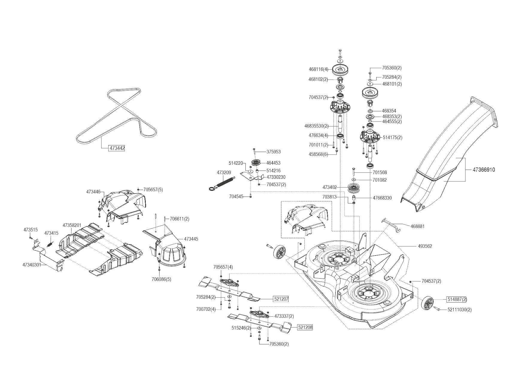 Odolné žacie ústrojenstvo z oceľového plechu obsahuje dva nože na čisté kosenie trávy a možno ho odstrániť v niekoľkých jednoduchých krokoch.