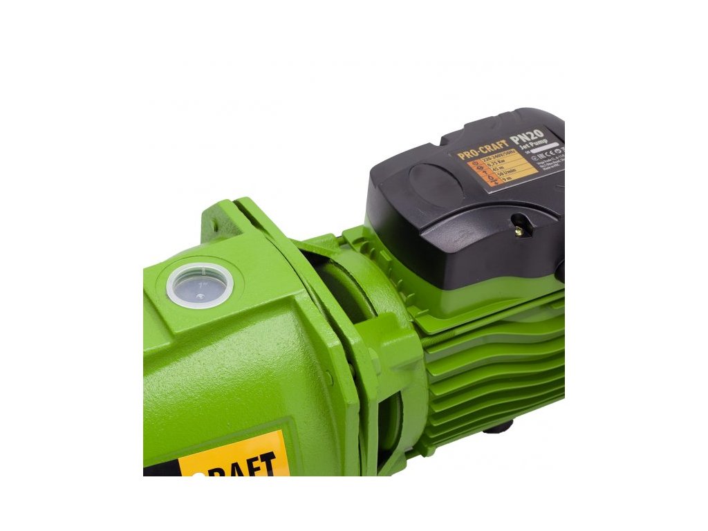 Tlakové čerpadlo Procraft PN20 Backyard je určené na čerpanie čistej vody z nádrže, jazierka, rybníka, studne. Výkonný motor s príkonom 750 W zaručuje výkon 3 000 litrov za minútu z hĺbky až 9 m do výšky až 45 m. Tepelná ochrana motora zaručuje dlhú životnosť a bezpečnosť pri práci. Odolné liatinové telo zvyšuje životnosť. Povrchová úprava zabraňuje korózii. K čerpadlu je potrebné pripojiť saciu hadicu (s drôtom) so sacím košom. Pred spustením je potrebné obežné koleso zaliať cez nalievací otvor pod skrutkou v telese čerpadla. Ideálne použitie je s tlakovým spínačom, ale za vhodných podmienok sa môže používať aj bez neho. Nenechávajte čerpadlo v chode bez vody. Balenie v kartóne.