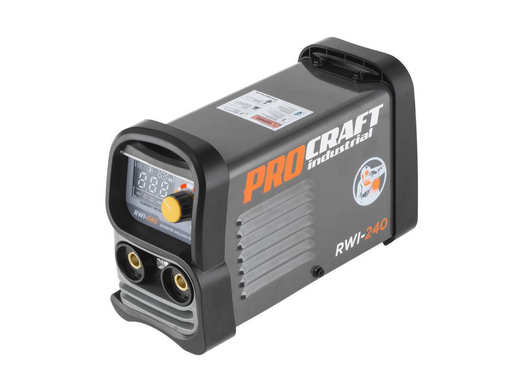 Zvárací invertor Procraft RWI-240 je určený na ručné zváranie metódou MMA, TIG Lift. Výkonové tranzistory IGBT zaručujú dlhú bezporuchovú prevádzku. Regulácia zváracieho prúdu v rozsahu 20–140 A umožňuje nastavenie optimálnych parametrov pri práci s rôznymi kovmi. Je možné použiť zváracie elektródy s priemerom 1,6 až 4,0 mm. Funkcie arc force, anti stick, hot start zaručujú rýchle a jednoduché zváranie. Pomocou LCD displeja sa zobrazuje aktuálny zvárací prúd. Súčasťou dodávky je kábel s držiakom elektród, kábel so zemniacimi kliešťami a návod. Balenie kartón.